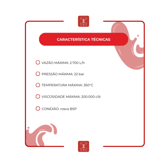 Utilizada em sistemas de circulação e recirculação de óleos, graxas líquidas, aditivos e polímeros com baixa a média viscosidade.